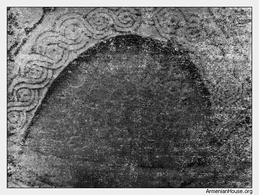 четко выделяются армянские буквы и без особого труда прочитываются слова:... ցի զխաչս/ ...որ կ/արդէք յաղաւթս/ իշեցէք (крест ... прочитав, молитвой помяните»). Эта надпись состоит из шести коротких строк. Исследователями, пытавшимися прочесть ее, контуры букв, видимо, были обведены мелом, что непозволительно и является проявлением ненаучного подхода к прочтению надписей.